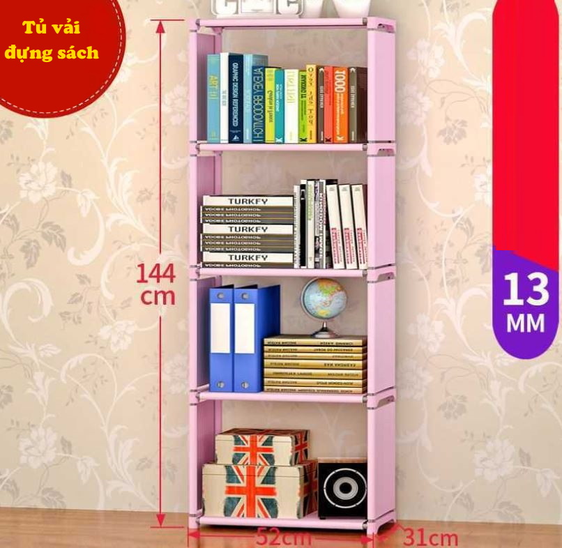 Bộ sản phẩm Tủ Vải Đựng Sách, Kệ Sách 4 Tầng Lắp Ghép, Tủ Vải Khung Sắt Đựng Đồ Đa Năng Tiện Lợi Chính Hãng Amalife Thương hiệu: Amalife.