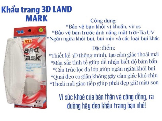 Trên đây là toàn bộ thông tin về sản phẩm Túi 6 Chiếc Khẩu Trang 3D Landmask VIP mà shop giới thiệu, hy vọng sẽ làm quý khách hài lòng.