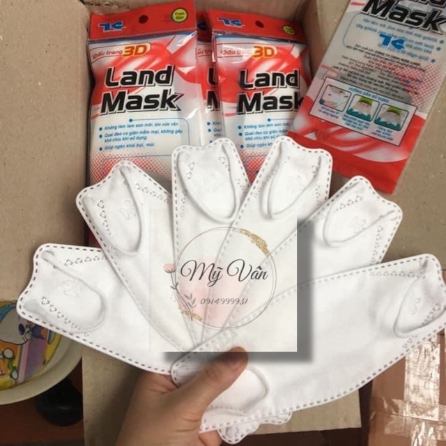 KHẨU TRANG LANDMASK KF94 Hàng Việt Nam XUẤT KHẨU – Khẩu trang 3D Landmask – Kháng khuẩn 99% – Có khả năng lọc bụi mịn PM25 – Giúp ngăn khói bụi …vv – Được thiết kế để hít thở dễ dàng và hô hấp thoải mái – Quai đeo co giãn mềm mại, không gây khó chịu khi sử dụng, – không làm lem son môi. – Tái sử dụng 3-5 lần. – Sau 1 ngày sử dụng tối chỉ cần giũ với nước ấm pha muối sau đó để khô dùng lại được tiếp tục. Lưu ý không Vò. – 1 set/ 6 cái. #khẩutrangkf94 #khẩutrangHànQuốc #khẩutrang #khẩutrangthanhoạttính