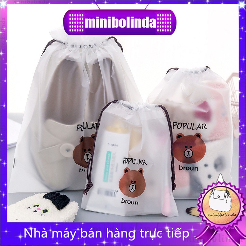 Bộ sản phẩm: Túi Dây Rút Đựng Giày Dép/Quần Áo/Đồ Lót Chống Nước Hình Gấu nâu.