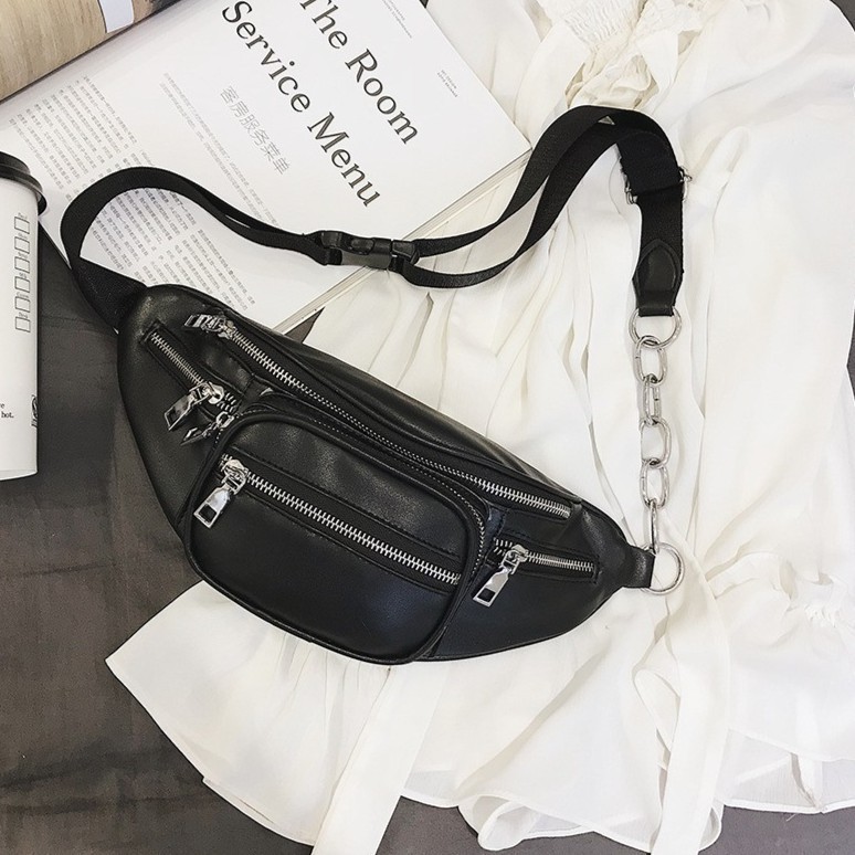 Bộ sản phẩm: Túi đeo chéo nữ, Túi bao tử chất liệu da mềm cao cấp, dây xích cá tính.