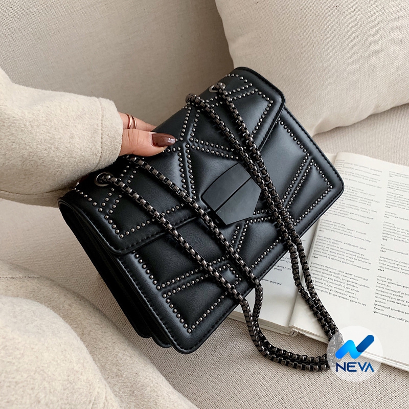 Bộ sản phẩm: Túi đeo chéo trần trám nạm đinh cao cấp NEVA789.