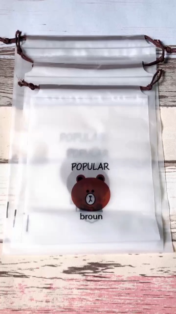 Túi rút lụa mềm không thấm nước đựng đồ cá nhân du lịch họa tiết hoạt hình Có 2 Loại: Gấu Brown và Mèo Có 3 kích thước là S : 20,4 x 15,8cm M : 25,8 x 18cm; L: 20 x 30cm làm từ nhựa lụa mờ mềm bền dai không giống với các loại túi nilon thông thường thích hợp cho các bạn đựng đồ riêng biệt tránh tiếp xúc với các đồ khác trong hành lý cá nhân