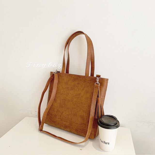 ❌❌❌100 ẢNH TỰ CHỤP THẬT. Các bạn đừng so sánh với những túi hiện nay trên thị trường vì tớ chỉ dùng da loại 1 và form cực đẹp❌❌❌ Túi tote da đi học. Chất da simili dày, 100% không bong tróc. Màu: 2 màu Đen / Nâu. Giá 150k! Tặng kèm tua rua cuộn cho mỗi túi. Đeo 2 kiểu: đeo vai / đeo chéo với dây dài (tháo rời được). Size: ngang 34 x cao 29 x đáy 10cm. Vừa A4