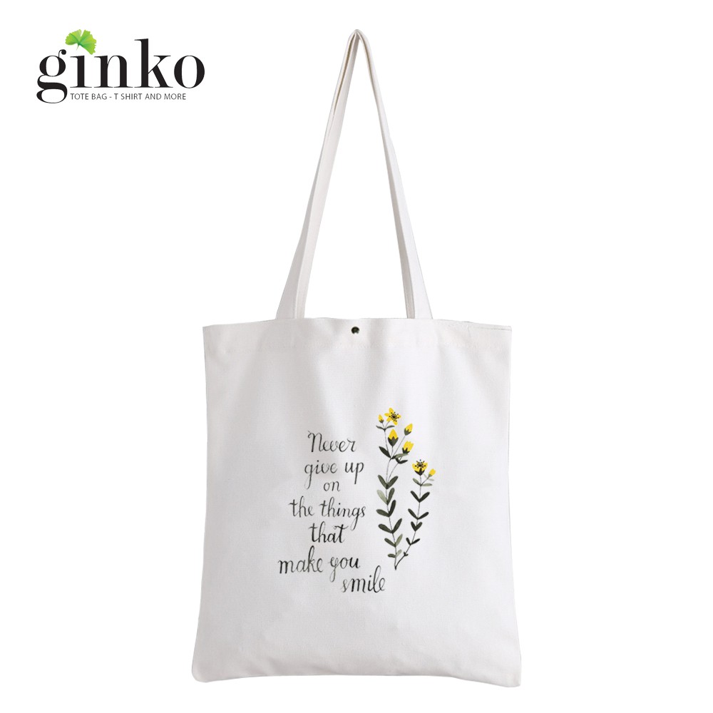Bộ sản phẩm: Túi Vải Tote GINKO Kiểu Basic Nút Bấm In Hình Never Give Up G128.