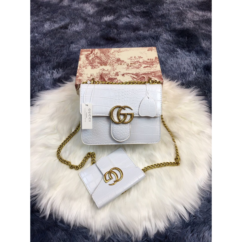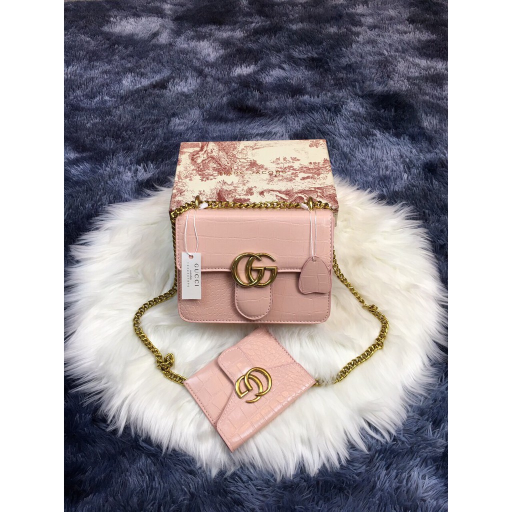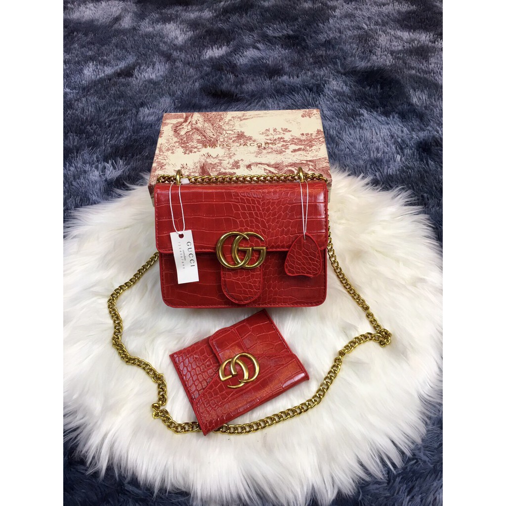 Bộ sản phẩm: Túi xách đeo chéo cầm tay da cá sấu kèm ví nhỏ.