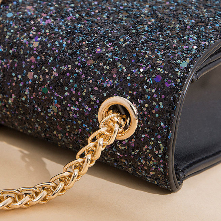 Túi xách nữ phù hợp đi tiệc, màu đen ánh kim sang trọng Dây kim loại, đính phụ kiện nổi bật Kích thước nhỏ gọn, vừa vặn để điện thoại, ví tiền và một số trang sức, mỹ phẩm Túi màu đen rất dễ phối đồ, phù hợp nhiều kiểu trang phục Túi xách nữ phù hợp đi tiệc, màu đen ánh kim sang trọng Dây kim loại, đính phụ kiện nổi bật Kích thước nhỏ gọn, vừa vặn để điện thoại, ví tiền và một số trang sức, mỹ phẩm Túi màu đen rất dễ phối đồ, phù hợp nhiều kiểu trang phục Chất liệu da PU cao cấp