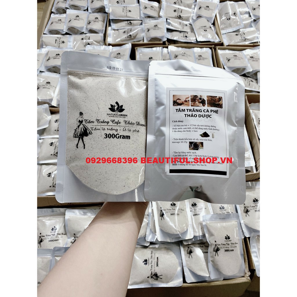 CHÀO MỪNG BẠN ĐẾN VỚI CỬA HÀNG BEAUTIFUL.SHOP.VN CAM KẾT: CHỈ BÁN HÀNG CHUẨN & CHÍNH HÃNG ————————————————– — Đảm bảo sự hài lòng 100% và đảm bảo chất lượng cao cấp! Khách hàng thân mến, nếu có vấn đề sau khi nhận hàng như giao hàng thiếu, chậm và hàng bị lỗi, xin vui lòng liên hệ với chúng tôi để được hỗ trợ Chúng tôi sẽ cố gắng hết sức để làm hài lòng bạn, đừng vội đưa ra những đánh giá không tốt, cảm ơn bạn rất nhiều! Vui lòng theo dõi cửa hàng của chúng tôi! —————————————————– ☆ ♥♥♥♥♥ Bột Ủ Tắm Trắng Cafe Thảo Dược Thiên Nhiên > Dùng cho cả mặt + body (toàn thân) 1- BỘT TẮM TRẮNG CAFE THẢO DƯỢC GIÚP TRẮNG DA TỪ THẢO DƯỢC: ➤ Thành phần: Sản phẩm chiết xuất 100% từ bột thiên nhiên, được kết hợp từ các loại thảo dược quý như: Tinh cám nếp, bột ngọc trai, bạch linh, café… ➤ Bột ủ trắng cafe thảo dược giúp làn da trắng sáng hẳn lên bằng cách: • Đào thải Melanin (hắc sắc tố gây đen da): Khi tiến hành ủ, các thành phần thảo dược sẽ thẩm thấu sâu vào da, tăng cường hoạt huyết và đào thải melanin ra ngoài. Do đó da không chỉ trắng dần lên mà các vết nám, tàn nhang cũng mờ dần. • Nuôi dưỡng da trắng hồng: Bên cạnh tác dụng ức chế sự hình thành hắc tố melanin trên biểu bì da, café thảo dược còn dưỡng trắng, cung cấp rất nhiều các dưỡng chất từ đương quy, tảo biển… sản sinh collagen, kìm hãm quá trình lão hóa giúp da trắng hồng, khỏe mạnh. 2- LỢI ÍCH MÀ TẮM TRẮNG CAFE THẢO DƯỢC MANG LẠI: • Ủ trắng da, bật tone, dưỡng da sáng mịn hồng hào chỉ sau vài lần sử dụng. • Làm sạch da, tẩy da chết, trị viêm lỗ chân lông (toàn thân), giảm mụn lưng… • Loại bỏ các bã nhờn trên da, Thu nhỏ lỗ chân lông, chống nẻ. • Làm chậm quá trình lão hóa da, giúp da luôn căng mịn, săn chắc. • Sản phẩm hoàn toàn tự nhiên, ủ trắng không bào mòn da, không làm mất đi lớp sừng trên da và không hồi lại tone, không dùng vẫn trắng. 3- TẮM TRẮNG CAFE THẢO DƯỢC PHÙ HỢP NHỮNG AI: + Cho người có làn da rám nắng bẩm sinh. + Người có làn da bị cháy nắng, không đều màu. + Da bị thâm sạm, bị viêm nang lông. 4- Sử dụng Bột TẮM TRẮNG CAFE THẢO DƯỢC bao lâu thì da trắng sáng mịn màng? • Bột Ủ TẮM TRẮNG CAFE THẢO DƯỢC vì hoàn toàn là thảo dược, không lột tẩy nên cần áp dụng trong một thời gian dài. • Với da trắng sẵn nhưng bị cháy nắng thì sau 2-3 lần ủ đầu tiên, da sẽ nhả ngay và trắng mịn trở lại. • Còn nếu là da đen bẩm sinh: Bạn cần phải ủ từ 3- 5 lần trở lên da mới đạt tác dụng. • Tuy vậy, sau khi da đã trắng rồi sẽ không bị bắt nắng, không hồi tone, ngưng dùng da vẫn trắng hồng, không đen trở lại. 5- CÁCH SỬ DỤNG: ✔️ Làm ướt da. ✔️ Trộn 1/2 bát con bột ủ + với 1/2 bát con sữa tươi không đường (Hoặc nước cam, sữa chua không đường, nước tinh khiết…) Trộn thật đều, có thể trộn trước khi đắp và để 10 phút để các thành phần ủ được hoà quyện vào nhau và tan ra. ✔️ Xoa bột ủ toàn thân, massage 10-15p, sau đó để bột ủ tự ngấm dần vào da 5-10p ✔️ Tắm lại bằng nước sạch.