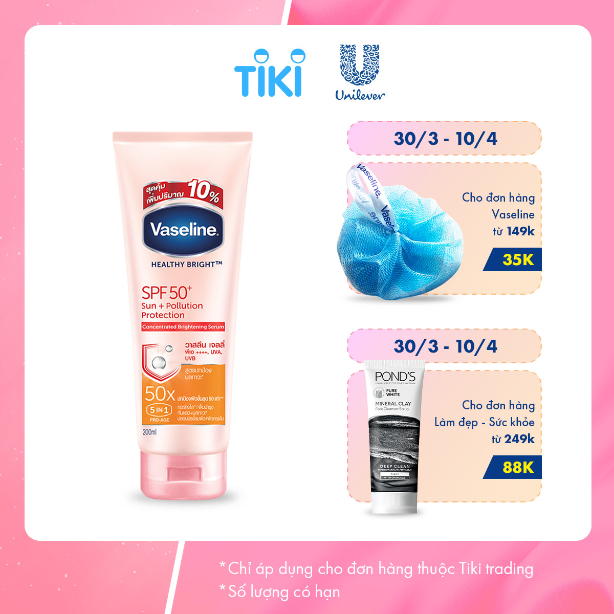 Bộ sản phẩm Vaseline 50x Serum Chống Nắng Cơ Thể SPF50 + Dưỡng Da Sáng Khoẻ 200ml Thương hiệu: Vaseline.
