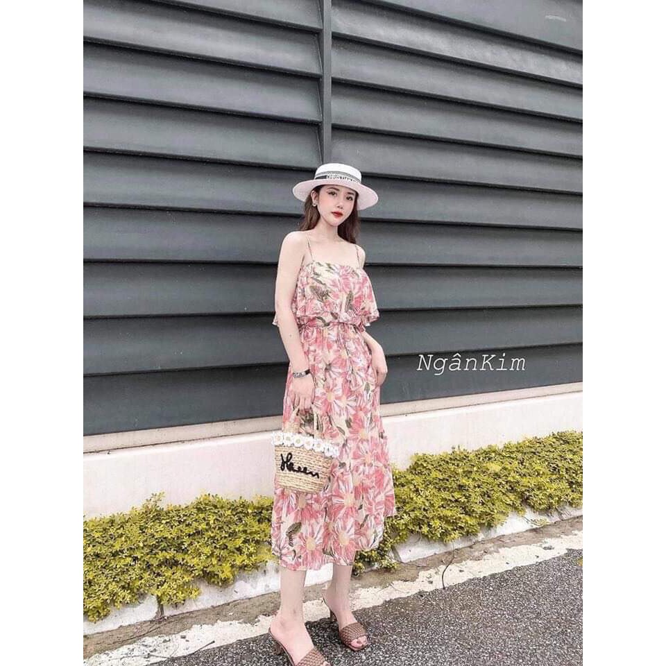Bộ sản phẩm: Váy đi biển 2 dây hoa hướng dương chất đũi tơ cá tính.