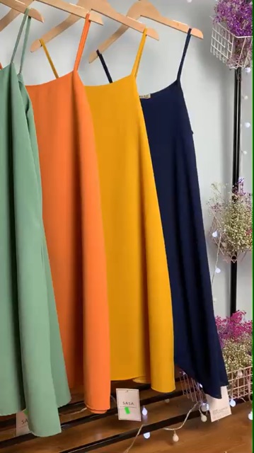 Bộ sản phẩm: Váy đũi 2 dây – váy maxy đũi trơn.