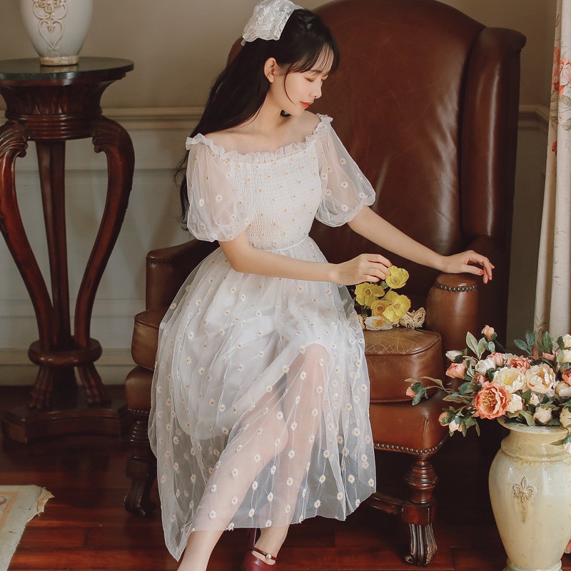 Bộ sản phẩm: Váy hoa cúc công chúa ulzzang vintage du lịch.