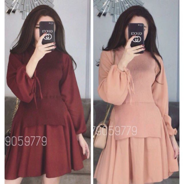 Bộ sản phẩm: Váy len nữ tay dài rút dây.