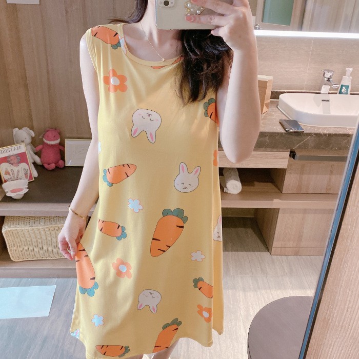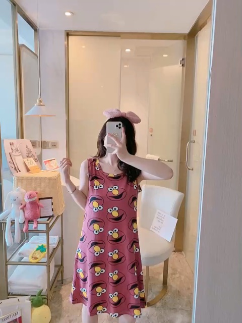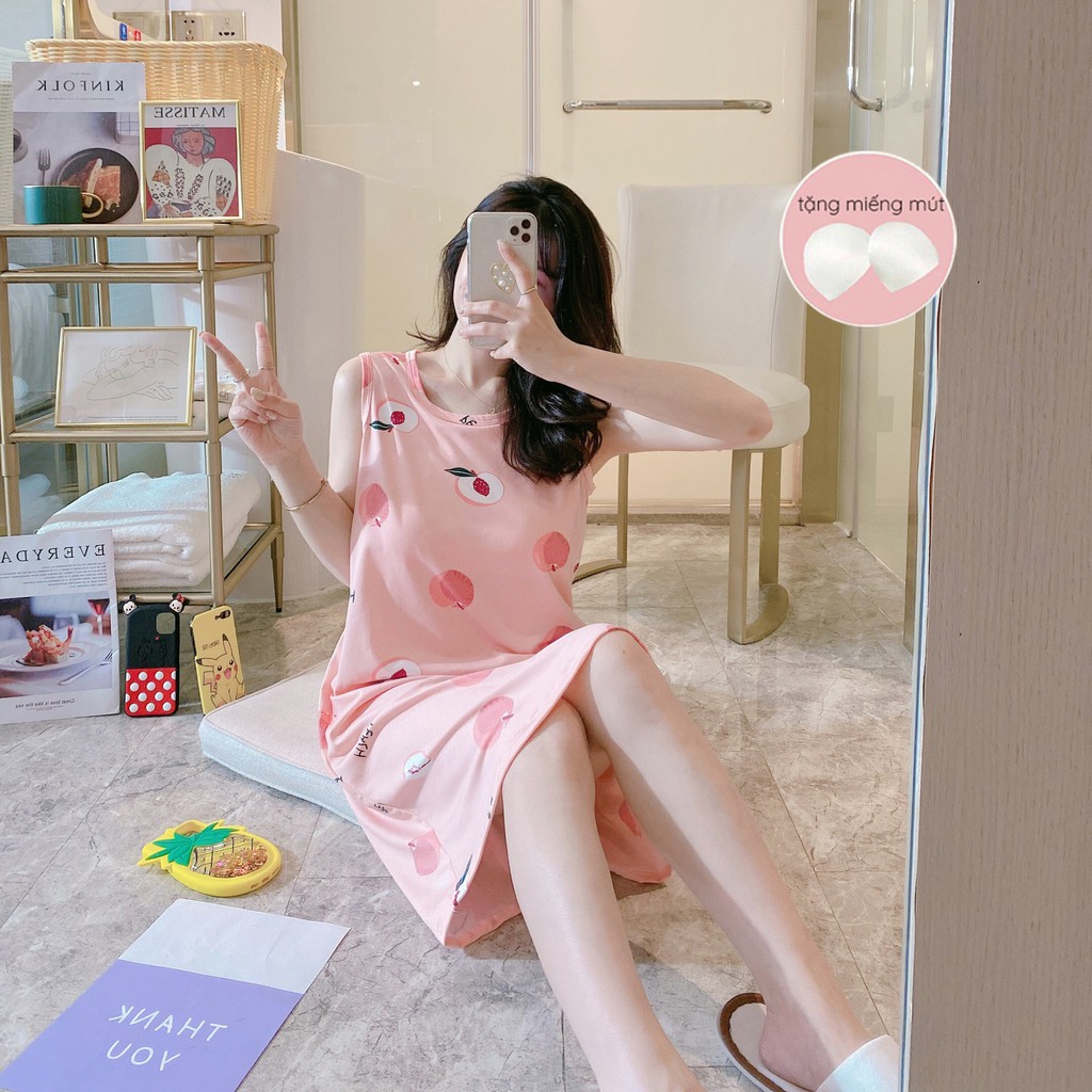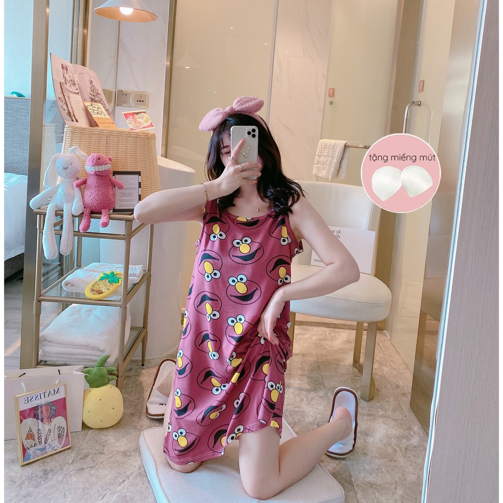 Bộ sản phẩm: Váy ngủ cộc tay thun sữa mềm mát siêu dễ thương.