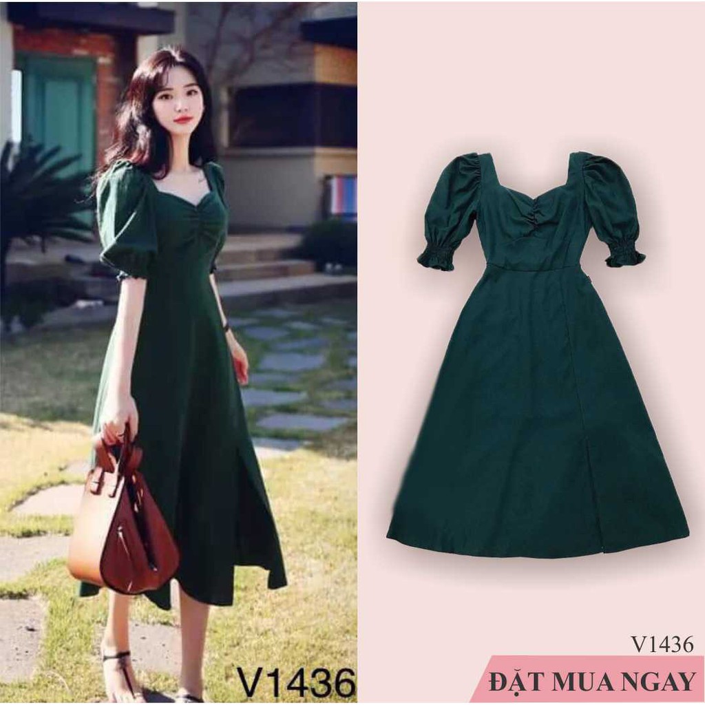 Bộ sản phẩm: Váy xanh xẻ tà V1436 – Mặc Dự Tiệc, Mặc Đi Chơi Cực Sang.