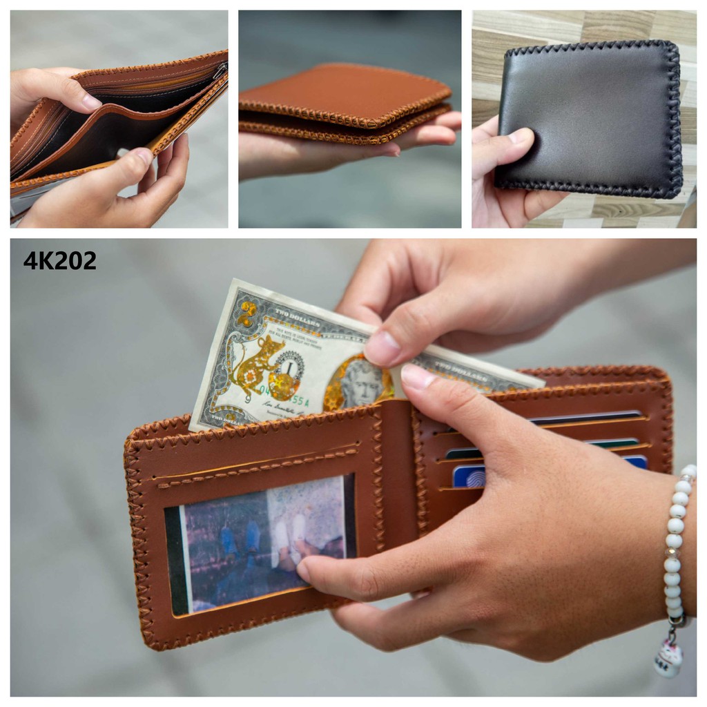 Bộ sản phẩm: VÍ NAM DA BÒ KHÂU VIỀN THỦ CÔNG 4K202-BH 12 THÁNG # 4K-Style.
