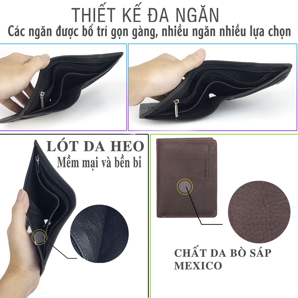 Bộ sản phẩm: Ví nam da bò sáp Mexico cao cấp V102-Da thật-BH 24tháng-Full hộp.