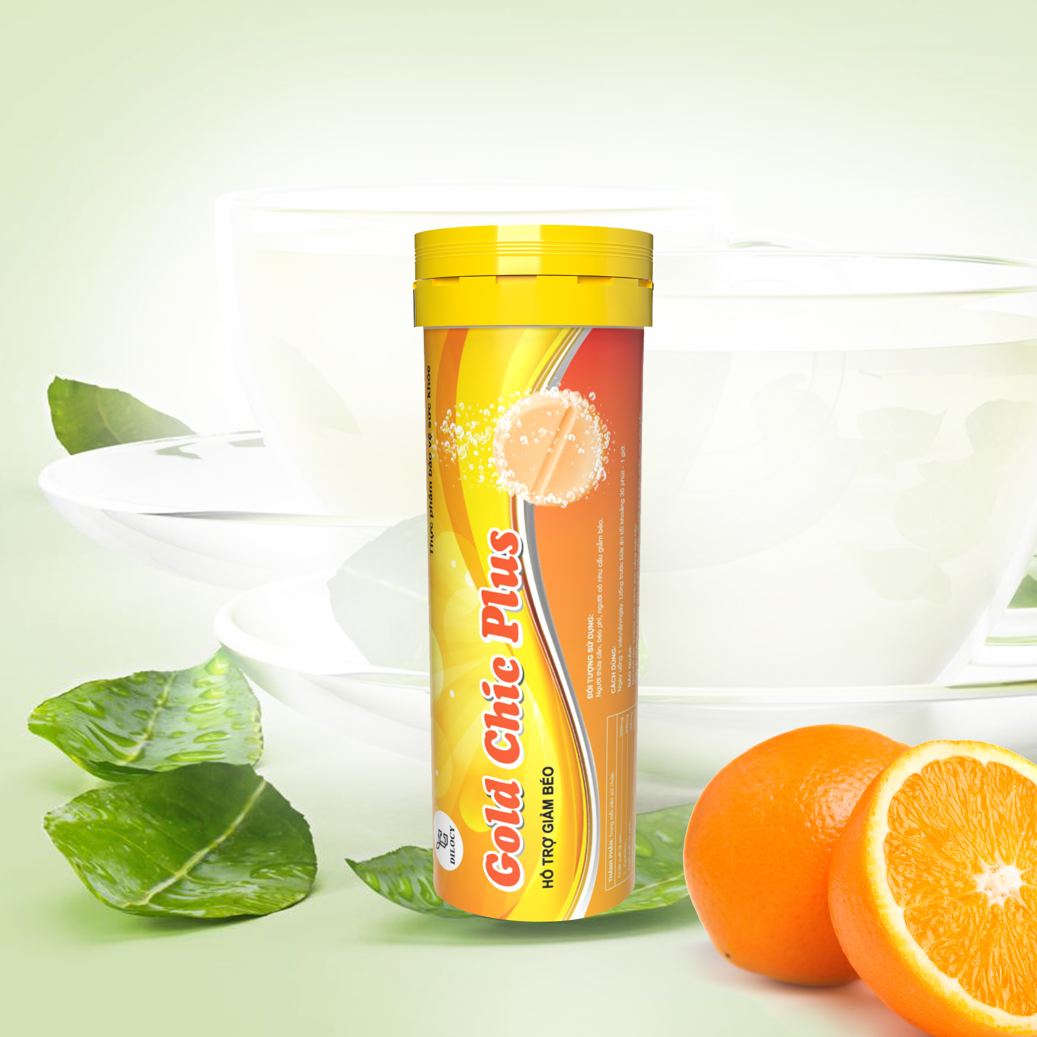Bộ sản phẩm Viên sủi hỗ trợ giảm cân vị cam Dilocy Gold Chic Plus – Chiết xuất từ thảo mộc thiên nhiên hỗ trợ giảm cân, phân giải mỡ an toàn hiệu quả, giảm thèm ăn. Thương hiệu: Dilocy.