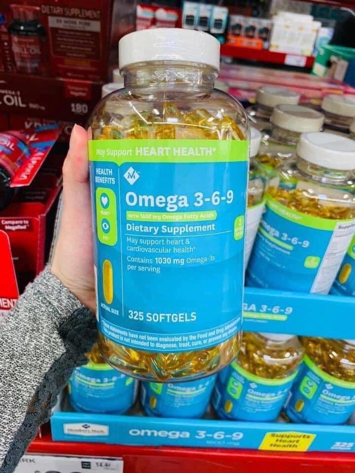 Quy cách: 325 viên Xuất xứ: Mỹ Viên uống dầu cá Member’s Mark Supports Heart Health là sự kết hợp của 3 loại: Omega-3, Omega-6, Omega-9, hỗ trợ tốt đối với sức khỏe tim mạch, mắt, não và hỗ trợ làm đẹp da. Bổ sung chất dinh dưỡng thiết yếu cho não bộ và tim mạch khỏe mạnh. Giúp giảm đau, giảm sưng tấy đối với những người bị đau lưng, đau do viêm khớp. Cải thiện trí nhớ, tăng cường khả năng tập trung, bảo vệ tế bào thần kinh. Đối tượng sử dụng: Từ 16 tuổi trở lên Viên uống dầu cá Member’s Mark Omega 3-6-9 Supports Heart Health – Hộp 325 viên Thông tin sản phẩm: Quy cách: 325 viên Thương hiệu: Member’s Mark Xuất xứ: Mỹ Viên uống dầu cá Member’s Mark Supports Heart Health là sự kết hợp của 3 loại: Omega-3, Omega-6, Omega-9, hỗ trợ tốt đối với sức khỏe tim mạch, mắt, não và hỗ trợ làm đẹp da. Bổ sung chất dinh dưỡng thiết yếu cho não bộ và tim mạch khỏe mạnh. Giúp giảm đau, giảm sưng tấy đối với những người bị đau lưng, đau do viêm khớp. Cải thiện trí nhớ, tăng cường khả năng tập trung, bảo vệ tế bào thần kinh. Đối tượng sử dụng: Từ 16 tuổi trở lên đặc biệt là những người có chức năng tim kém, người bị đau lưng, viêm khớp, đau tuyến tiền liệt, người có trí nhớ kém, khả năng tập trung thấp, người có triệu chứng suy yếu thể lực, rối loạn tâm thần Omega 3-6-9 là gì? Vai trò của Omega 3-6-9 đối với cơ thể? Omega 3-6-9 là gì? Chắc hẳn mỗi chúng ta đều đã nghe nói về “Omega-3” hoặc “axit béo”, nhưng bạn có biết axit béo là gì, có bao nhiêu loại axit béo thiết yếu và tại sao cơ thể chúng ta cần nó? Axit béo rất cần cho sự hoạt động bình thường của các hệ thống trong cơ thể chúng ta, bao gồm cả da, não bộ, hệ tuần hoàn, hô hấp và các cơ quan khác. Cơ thể chúng ta có thể tự tổng hợp được các axit béo, trừ hai loại axit béo cơ thể không tự tổng hợp được, còn gọi là các axit béo thiết yếu (EFAs). Hai loại axit béo cơ thể chúng ta không tự tổng hợp được mà phải cung cấp hoàn toàn từ bên ngoài đó là các axit béo Omega-3 và Omega-6. Omega-9 không phải là axit béo thiết yếu vì cơ thể có thể tự tổng hợp ra nó từ các Omega-3 và Omega-6. Vai trò của Omega đối với cơ thể: Omega 3 (Alpha-linolenic Acid): là một nhóm acid béo thiết yếu đóng vai đặc biệt trò quan trọng trong chức năng não bộ, thị giác, hệ miễn dịch và có lợi cho sức khỏe tim mạch. Omega-6 (Linoleic Acid): có lợi ích là giúp giảm các cholesterol xấu trong cơ thể và chống viêm, phát triển tối ưu não bộ, thị giác. Omega-9 (Oleic Acid) là nhóm axit béo cơ thể có thể tự tổng hợp được từ hai loại Omega-3 và Omega-6. Loại axit béo này đóng vai trò trong việc nâng cao sức khỏe tim mạch bằng cách hỗ trợ hoạt động của hệ tuần hoàn, duy trì mức cholesterol lành mạnh và tăng cường hệ miễn dịch. Dấu hiệu của cơ thể khi thiếu Omega 3-6-9 Cơ thể thường xuyên mệt mỏi Bạn dễ bị cảm lạnh, cảm cúm, nhiễm trùng và một số vấn đề sức khoẻ khác. Tinh thần uể oải, trầm cảm Tình trạng chán trường, tinh thần trở nên uể oải, tệ hơn là trầm cảm, stress kéo dài. Những bệnh liên quan đến tim mạch Tình trạng đau nhức xương khớp Các khớp xương dễ bị tổn thương do chấn thương, sử dụng khớp quá mức, viêm khớp. Da khô, không đều hoặc ngứa Da khô, không đều hoặc ngứa. Các axit béo thực sự cần thiết cho các tuyến sản xuất dầu, các chất dưỡng ẩm tự nhiên của da trong cơ thể. Luôn cảm thấy lạnh Nếu như những người xung quanh cảm thấy bình thường trong khi bạn lại luôn có cảm giác ớn lạnh dù cho nhiệt độ phòng không thấp lắm thì chứng tỏ bạn đang bị thiếu hụt chất béo 1 cách trầm trọng. Công dụng của dầu cá Omega 3-6-9 Supports Heart Health Giúp cơ thể bổ sung các nguồn chất dinh dưỡng đa dạng, thiết yếu cho não bộ và tim mạch. Acid béo Omega-3 trong dầu cá có hiệu quả kì diệu với tim mạch và hệ thống mạch máu, giảm cholesterol, giảm huyết áp. Trong dầu cá có chứa chất EPA giúp tăng cường các cholesterol tốt để bảo vệ tim mạch. Giúp giảm đau, giảm sưng tấy đối với những người bị đau lưng, đau do viêm khớp. Cải thiện trí nhớ, tăng cường khả năng tập trung, bảo vệ tế bào thần kinh. Giảm nguy cơ mắc các bệnh tim mạch, tăng huyết áp, nhồi máu cơ tim. Hỗ trợ làm giảm cholesterol và triglycerid trong máu. Bồi dưỡng mô võng mạc mắt, giúp sáng mắt, giảm mỏi mắt. Ngăn ngừa sự xuất hiện nếp nhăn, làm chậm quá trình lão hoá da. Duy trì độ đàn hồi tốt và tạo độ săn chắc cho làn da. Thành phần: Omega-3 (chứa DHA, EPA, ALA), Omega-6 (chứa LA, GLA), Omega-9 (chứa OA), dầu cây rum, tinh dầu hoa anh thảo, dầu cá cô đặc, dầu olive, dầu cây lưu ly… Hướng dẫn sử dụng: Uống 2 viên/ ngày trong bữa ăn. Dùng cho người lớn trên 16 tuổi. Người có thai hoặc đang cho con bú nên tham khảo ý kiến bác sĩ trước khi dùng. Đối tượng sử dụng Những người có chức năng tim kém Người bị 