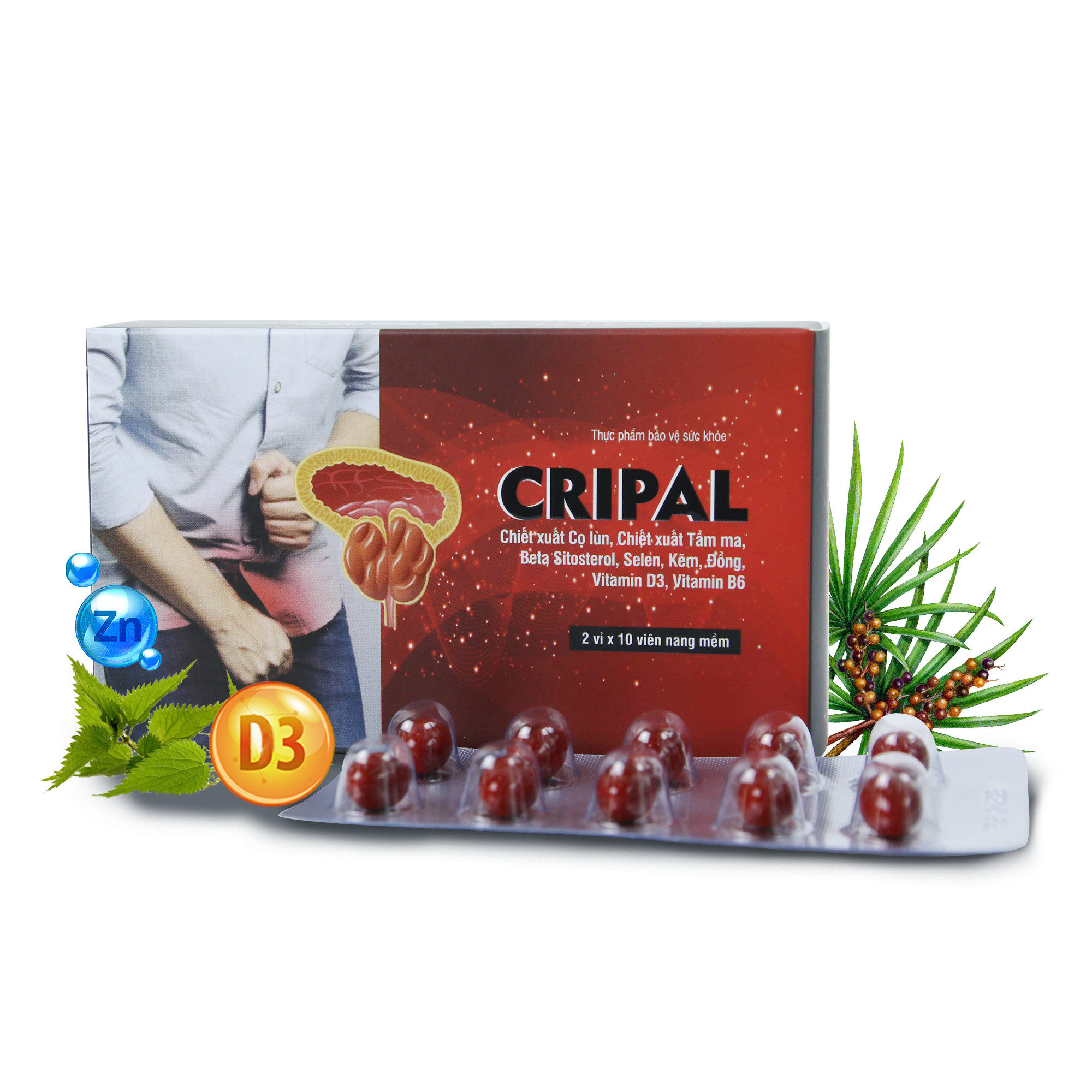 Bộ sản phẩm Viên Uống Hỗ Trợ Giảm Triệu Chứng Phì Đại Tuyến Tiền Liệt Nam Giới Cripal Hộp 2 Vỉ x 10 Viên Thương hiệu: Cripal.