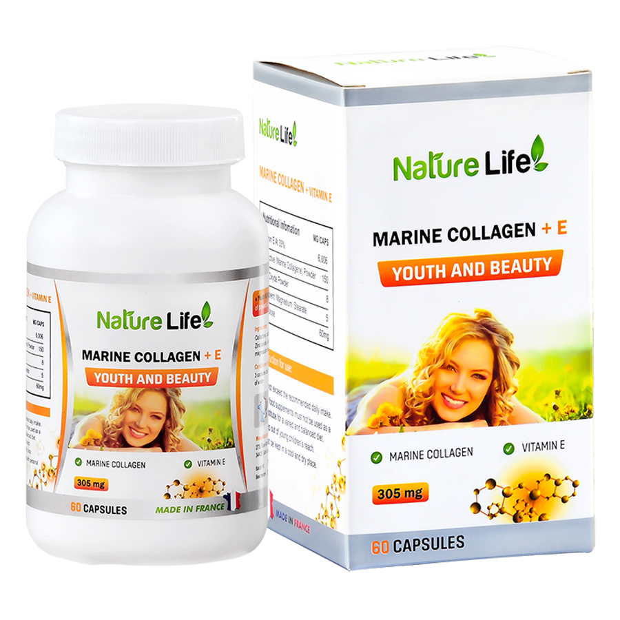 Bộ sản phẩm Viên Uống Marine Collagen +E Youth & Beauty NatureLife (60 viên) , Thương hiệu NatureLife Xuất xứ Pháp SKU 2551377192204.