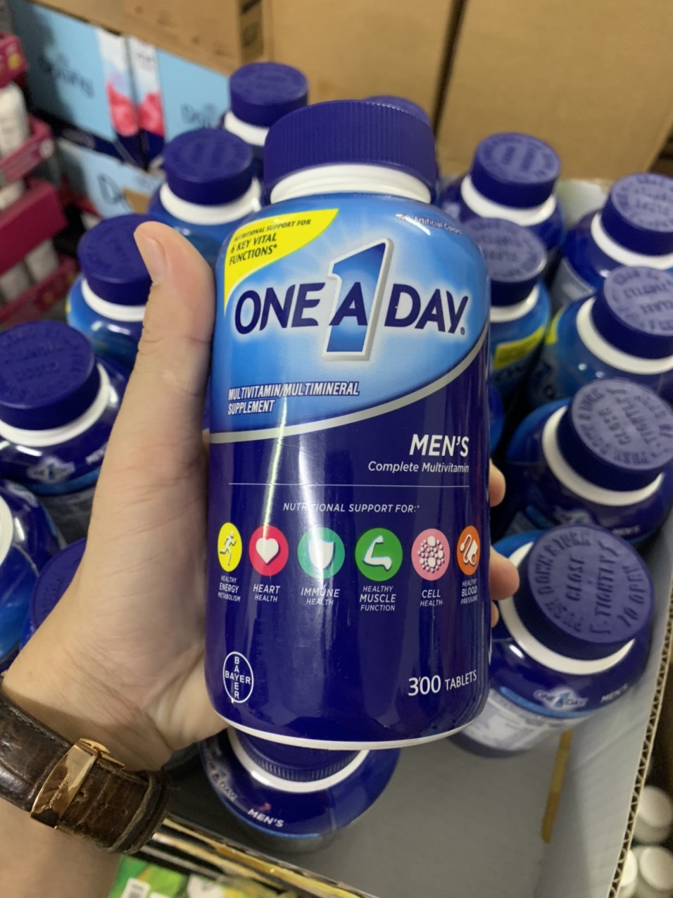Viên uống Vitamin tổng hợp cho Nam – One a day Men’s Multivitamin 300 viên mẫu mới nhất Thương hiệu: Bayer Xuất xứ: Mỹ – Costco Hàng nhập khẩu trực tiếp – Đã thay đổi mẫu mã mới nhất để tránh hàng làm nháii trên thị trường Bổ sung vitamin, chất khoáng thiết yếu mỗi ngày, giúp nam giới khỏe mạnh hơn. Tăng cường đề kháng và miễn dịch, làm giảm nguy cơ mắc bệnh Hỗ trợ tim mạch, phòng ngừa bệnh tim (*) Tăng cường sức mạnh cơ bắp, phát triển cơ xương khỏe mạnh, dẻo dai Ngăn ngừa chứng mệt mỏi, suy nhược, giảm stress…Tất cả chỉ trong 1 viên One a day Men’s Viên uống Vitamin tổng hợp cho Nam – One A Day women Multivitamin 300 viên của Mỹ – mẫu mới Thương hiệu: Bayer Xuất xứ: Costco USA Hàng nhập khẩu trực tiếp không qua trung gian – có dãn tem nhãn phụ, công ty nhập khẩu chống hàng giảa Vitamin tổng hợp One A Day Men Health Formula 300 viên cung cấp hơn 20 loại vitamin + khoáng chất cần thiết cho nam giới để tăng cường sức khỏe, sinh lực, tăng năng lượng giúp hoạt động hiệu quả, đồng thời làm giảm nguy cơ mắc bệnh. Sản phẩm được ưa chuộng tại Mỹ và nhiều quốc gia trên Thế giới. Mẫu mới nhất Giới thiệu sản phẩm One A Day Men Health Formula 300 viên: ➤ Nam giới là phái mạnh, chính vì vậy, hãy biết chăm lo sức khỏe của chính mình, đừng để áp lực công việc, gánh nặng cơm áo gạo tiền khiến chơ thể bị suy nhược, sức khỏe giảm sút, đau ốm bệnh tật. ➤ Tại rất nhiều quốc gia trên Thế giới, đặc biệt là quốc gia phát triển, những người đàn ông bận rộn thường chọn cho mình cách bổ sung dưỡng chất bằng One A Day Men’s Health Formula 300 viên ➤ Viên uống One A Day cho nam là viên uống tổng hợp vitamin hoàn chỉnh với công thức đặc biệt giúp hỗ trợ vấn đề sức khỏe của nam giới (dưới 50 tuổi), tăng năng lượng, tăng cường sinh lực, tăng đề kháng giúp cơ thể khỏe mạnh cường tráng, sẵn sàng cho một ngày làm việc tích cực và hiệu quả. Công dụng của One A Day Men’s Health Formula 300 viên: ☞ Bổ sung vitamin, chất khoáng thiết yếu mỗi ngày, giúp nam giới khỏe mạnh hơn. ☞ Tăng cường đề kháng và miễn dịch, làm giảm nguy cơ mắc bệnh ☞ Hỗ trợ tim mạch, phòng ngừa bệnh tim (*) ☞ Vitamin tổng hợp One A Day chứa nhiều vitamin nhón B giúp chuyển hóa dưỡng chất thành năng lượng, giúp đàn ông tràn đầy sinh lực, làm việc hiệu quả ☞ Tăng cường sức mạnh cơ bắp, phát triển cơ xương khỏe mạnh, dẻo dai ☞ Ngăn ngừa chứng mệt mỏi, suy nhược, stress, ☞ Hỗ trợ sức khỏe tuyến tiền liệt, tăng cường sin.h lý, tăng số lượng và chất lượng tinh trùng, ngừa vô sinh (*) ☞ Vitamin tổng hợp One A Day Men’s 300 viên thực sự cần thiết cho người đàn ông hiện đại, sản phẩm thích hợp với độ tuổi từ 18 – 49 tuổi. Viên uống vitamin tổng hợp One A Day Men’s Health Formula có tốt không? Vitamin tổng hợp One A Day được sản xuất dựa trên tiêu chuẩn nghiêm ngặt, đạt tiêu chuẩn quốc tế trước khi được lưu thông trên thị trường. Sản phẩm không chứa chất tạo màu, hương vị, gluten, lúa mì, sữa, không gây dị ứng. Hàm lượng của mỗi thành phần vi khoáng phù hợp với cơ địa hấp thu của nam giới, trong khi đó, không hề có tác dụng phụ nào gây ảnh hưởng xấu đến sức khỏe. One a day men đã được ưa chuộng trên thị trường Thế giới, những đánh giá rất tích cực trên Amazon – Trang web thương mại lớn nhất nước Mỹ sẽ giúp bạn trả lời câu hỏi sản phẩm này có tốt hay không. Vì sao nên bổ sung vitamin tổng hợp One a day? ● Nam giới là trụ cột của gia đình, chắc chắn cần phải làm việc nhiều hơn, chịu nhiều áp lực, stress, trong khi đó, chế độ ăn uống không đảm bảo, thực phẩm bẩn mất vệ sinh, những cuộc gặp gỡ nhậu nhẹt kéo dài, và nhiều yếu tố khác khiến cho sức khỏe giảm sút, nguy cơ mắc bệnh cao hơn, làm giảm chất lượng cuộc sống và hiệu quả công việc. ● Bổ sung vitamin tổng hợp là điều vô cùng cần thiết để cung cấp những dưỡng chất mà bạn có thể không bổ sung đủ hàng ngày. Sản phẩm của Mỹ đã được rất nhiều quốc gia trên Thế giới tin dùng với hiệu quả tốt, không có tác dụng phụ. Thành phần: Có hơn 20 loại vitamin và khoáng chất từ nhóm A, B1, B9 Acid Folic, B12, C, D, E đến kẽm, Mn, Se, Mg, Lycopene… Hướng dẫn sử dụng: Uống 1 viên/ngày, uống trong hoặc ngay sau bữa ăn để hấp thu tốt nhất. Không sử dụng quá liều, không dùng cho tre rem.