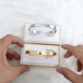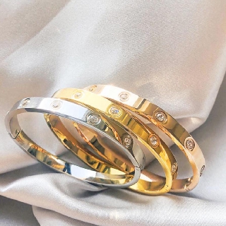 Bộ sản phẩm: Vòng Tay Nữ, Vòng Tay Cartier Titan Đính Đá Pha Lê Không Han Gỉ.