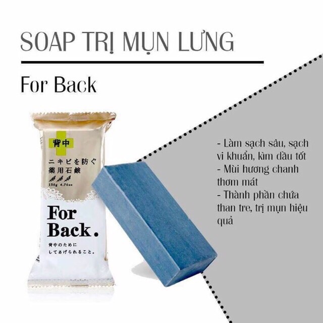 XÀ PHÒNG TRỊ MỤN LƯNG FOR BACK – MEDICATED NỘI ĐỊA NHẬT Giá bánh xà phòng Bánh 135g to lắm luôn ạ cả nhà dùng k hết! To gấp đôi bánh xà phòng lifebouy của mình luôn ạ… ☘️Xà phòng trị mụn lưng For Back là sản phẩm đặc trị mụn lưng của Pelican Nhật Bản. Pelican là hãng mỹ phẩm cực kỳ nổi tiếng với các sản phẩm trị mụn. For Back Medicated Soap nhận được phản hồi rất tích cực từ các kênh người dùng như Amazon hay Cosme. Chỉ sau 2-3 tuần sử dụng, tình trạng mụn lưng sẽ được cải thiện rõ rệt ☘️Lưng là bộ phận rất dễ bị mụn nếu như chúng ta không giữ vệ sinh hoặc vệ sinh không đúng cách. Ngoài ra nếu mặc quần áo quá chật, không thấm hút được mồ hôi cũng sẽ tạo ra môi trường lý tưởng cho vi khuẩn gây mụn sinh sôi. Mụn lưng gây mất thẩm mỹ, làm khổ chủ vô cùng mất tự tin. ☘️Xà phòng trị mụn lưng For Back trị dứt điểm mụn lưng thế nào? ⭕️ Xà phòng For Back của Pelican trị mụn lưng hiệu quả với các bước sau: ☑ Bước 1: Làm sạch lỗ chân lông Than hoạt tính và bùn khoáng: nổi tiếng với khả năng thải độc da. Chúng len lỏi sâu trong lô chân lông, làm sạch, loại bỏ bã nhờn, bụi bẩn. Papain: một loại enzim phân hủy protein có trong quả đu đủ. Enzim này giúp phân giải và loại bỏ lớp tế bào chết trên bề mặt cơ thể. ☑ Bước 2: Diệt khuẩn Triclosan: một chất sát khuẩn mạnh, tiêu diệt vi khuẩn gây mụn và ngăn chúng quay trở lại. Glycyrrhizin Dipotassium: hoạt chất chiết xuất từ rễ cam thảo cực kỳ tốt cho da. Nó có tác dụng kháng khuẩn, chống viêm, giữ cho da khỏe mạnh. #xaphongforback #forbacksoap