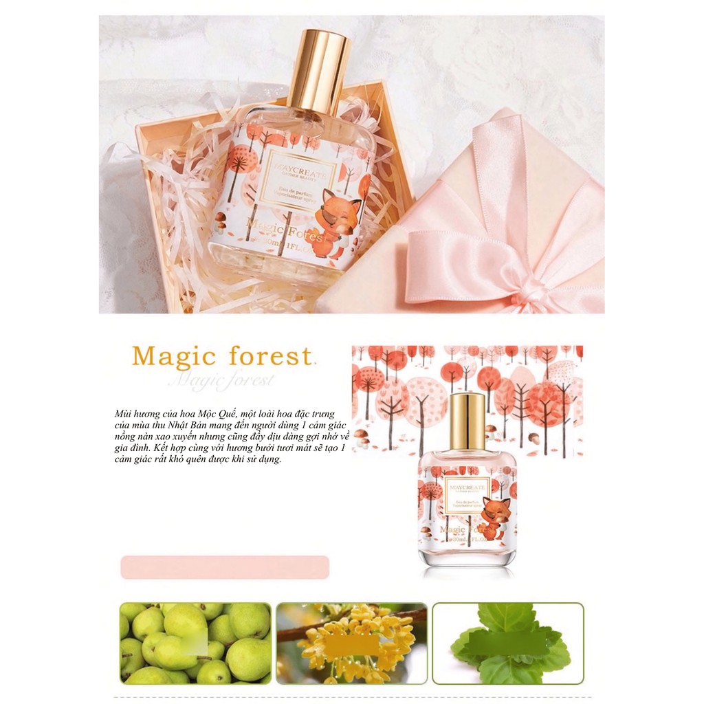 Chi tiết các thông sỗ kĩ thuật kèm hình ảnh của bộ sản phẩm Xịt thơm nước hoa toàn thân Body Mist – Maycreate 30ml, quý khách xem dưới đây:
