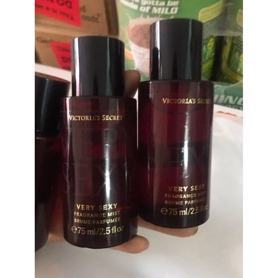 Xịt Thơm Toàn Thân Victoria’s Secret Very Sexy Fragrance Mist (75ml) Giá bán: #250k ✨Very Sexy, đúng như tên gọi, gợi tả hương thơm quyến rũ. Cùng với đó là cảm xúc thăng hoa đầy gợi cảm thu hút mọi đối tượng xung quanh. ✨Hương thơm của sản phẩm là sự kết hợp hoàn hảo giữa hương hoa lan nhẹ nhàng cùng hương vani ngọt ngào, hòa quyện với hương quýt tươi mát và hương quả mâm xôi quyến rũ tạo ra các tầng hương độc đáo: – Hương đầu: Hương phong lan, hoa dạ anh thảo, vani. – Hương giữa: Clementine trắng, nho đen và mật ngọt. – Hương cuối: Gỗ tuyết tùng, xạ hương ✨Xịt thơm toàn thân có lượng tinh dầu ít hơn so với nước hoa. Vì vậy, hương thơm không quá nồng, cực kỳ dễ chịu cho những người xung quanh. Nhưng hương thơm đảm bảo lưu lại khoảng 3-4 tiếng. Lưu ý, việc lưu hương còn tùy thuộc vào thời tiết và cơ thể của mỗi người. ✨Sản phẩm có thiết kế dạng chai xịt, có khả năng tỏa ra một lượng vừa đủ giúp bao phủ toàn thân khiến các nàng luôn đắm chìm trong hương thơm ngây ngất.